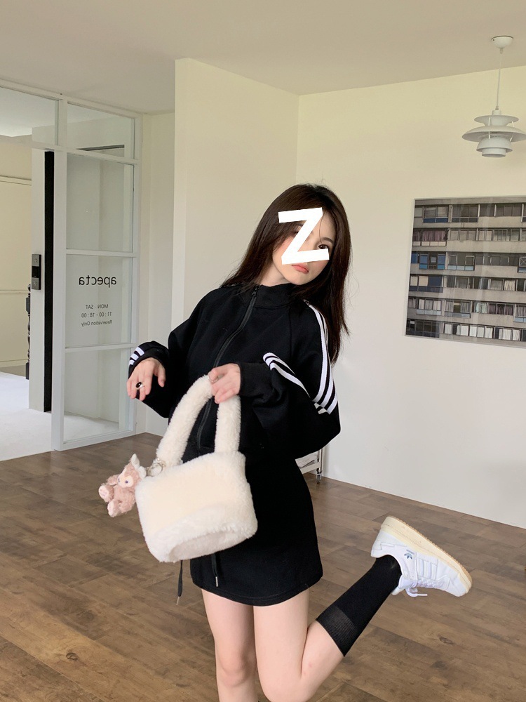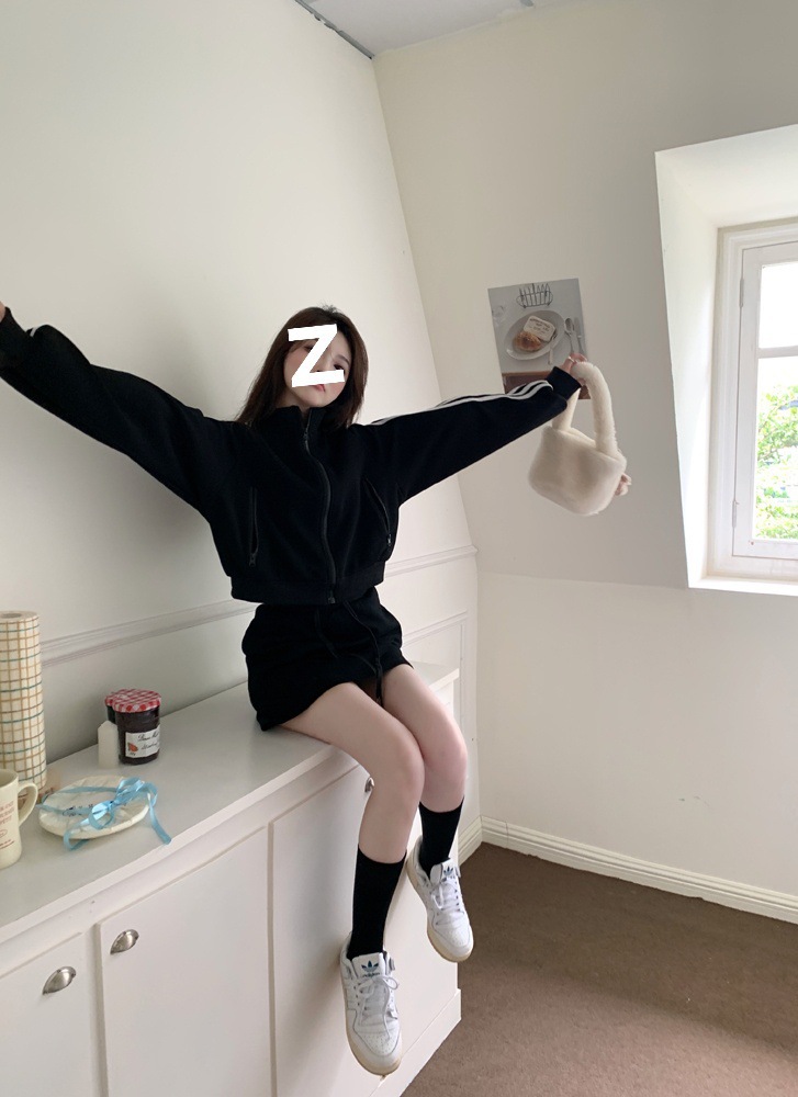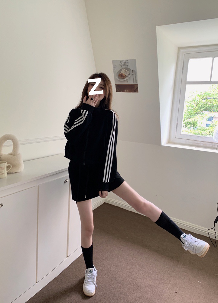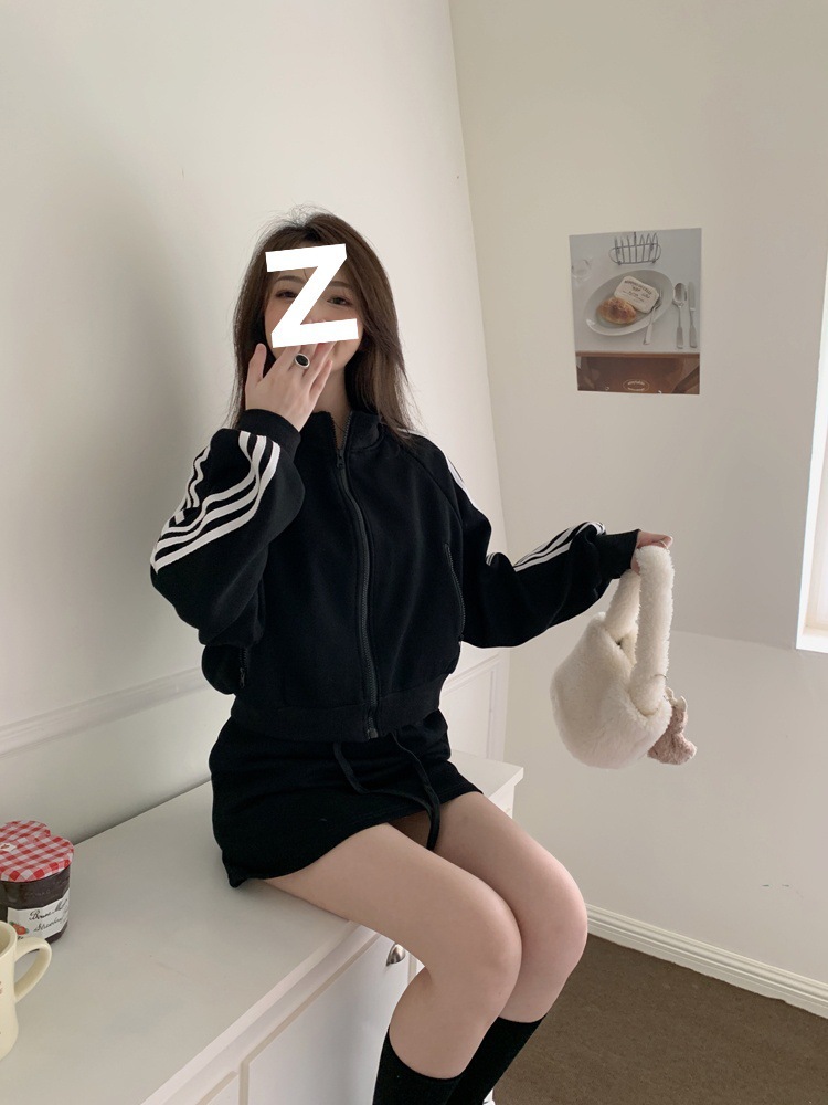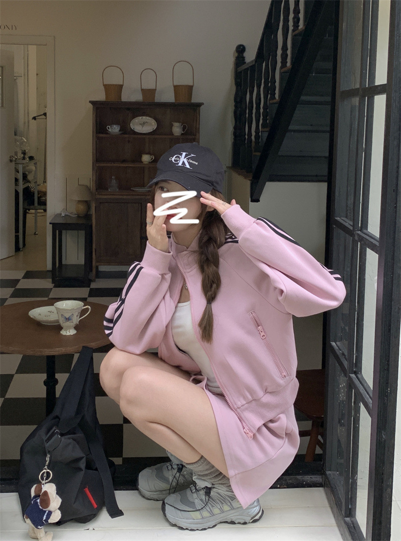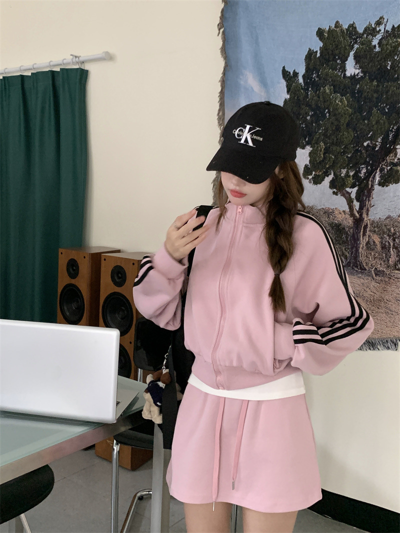 Casual All-match Suit Women's Pink Sweatshirt Coat Skirt